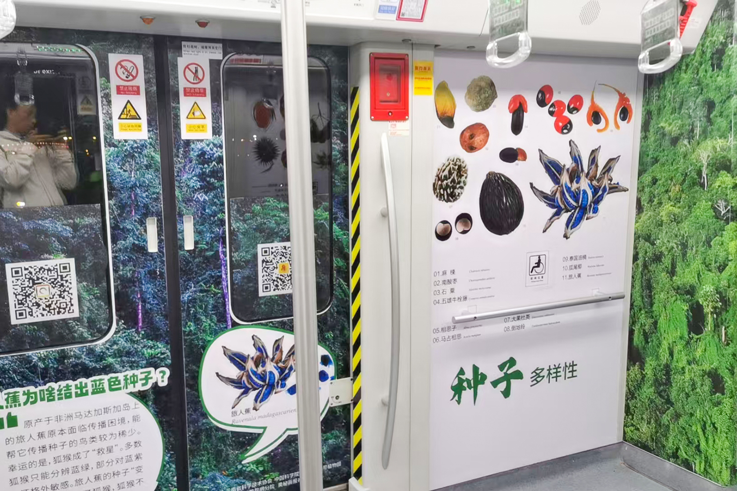 “科普云南號”不僅是一場展覽,更是一次創(chuàng)新的科普實踐。它融合了復(fù)雜的熱帶雨林生態(tài)系統(tǒng)、熱帶植物繁衍策略、生物多樣性保護以及民族植物學(xué)中的生態(tài)智慧,同時展示了山姜花柱運動、多花脆蘭雨媒傳粉、蜜蜂“幼教舞蹈”、大蟻蛛“哺乳育幼”等熱帶生物學(xué)科研成果。借助觸手可及的地鐵車廂圖文,讓市民在短暫旅途中感受自然之美與科學(xué)之趣。這是一項推動科學(xué)普及、提升公眾生態(tài)文明意識、展現(xiàn)云南作為生物多樣性寶庫形象的科普新舉措。