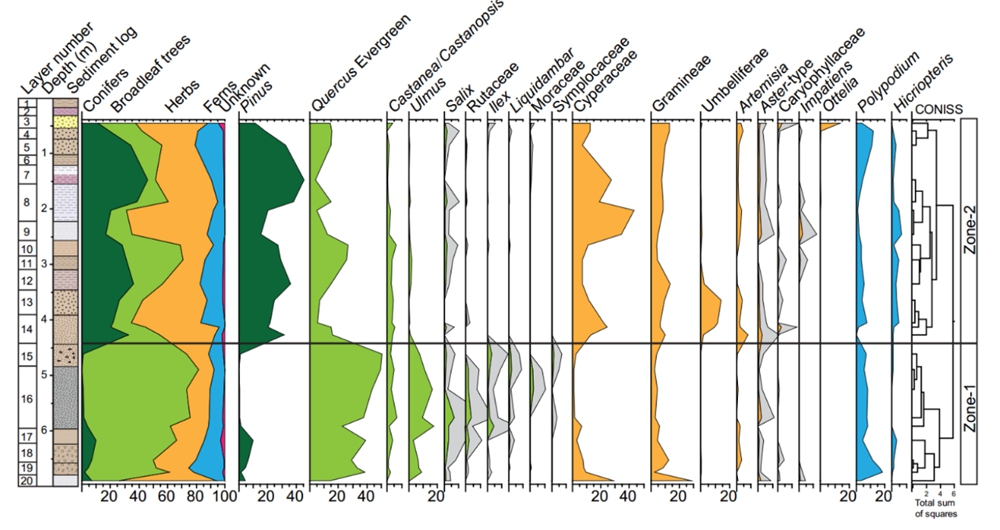 ?圖4,甘棠箐遺址孢粉組合圖譜?。