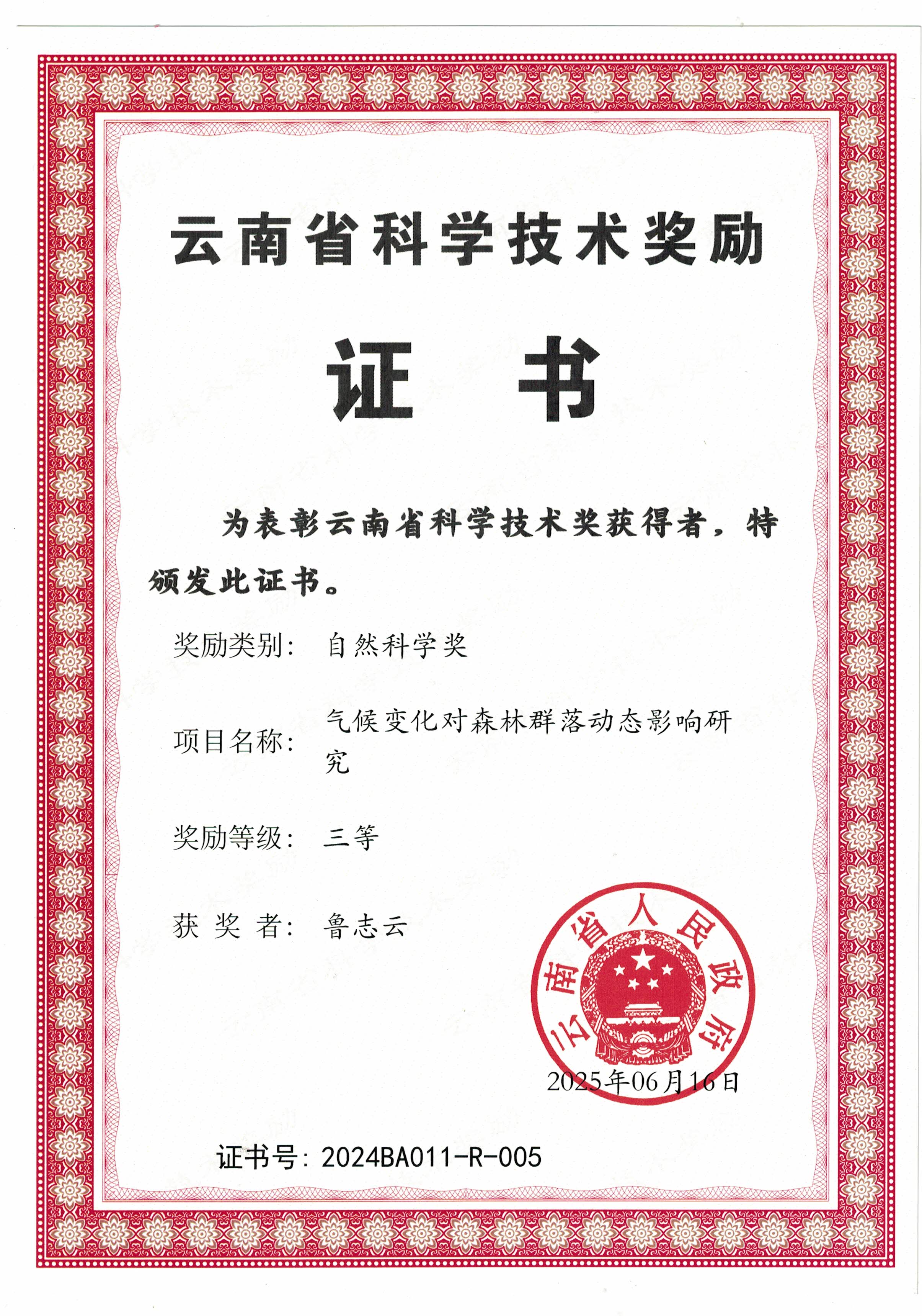 8月22日,在昆明舉行的2024年度云南省科學(xué)技術(shù)獎(jiǎng)勵(lì)大會(huì)上,依托哀牢山生態(tài)站長期科研工作開展的氣候變化對森林群落動(dòng)態(tài)影響研究項(xiàng)目榮獲云南省自然科學(xué)獎(jiǎng)三等獎(jiǎng)。